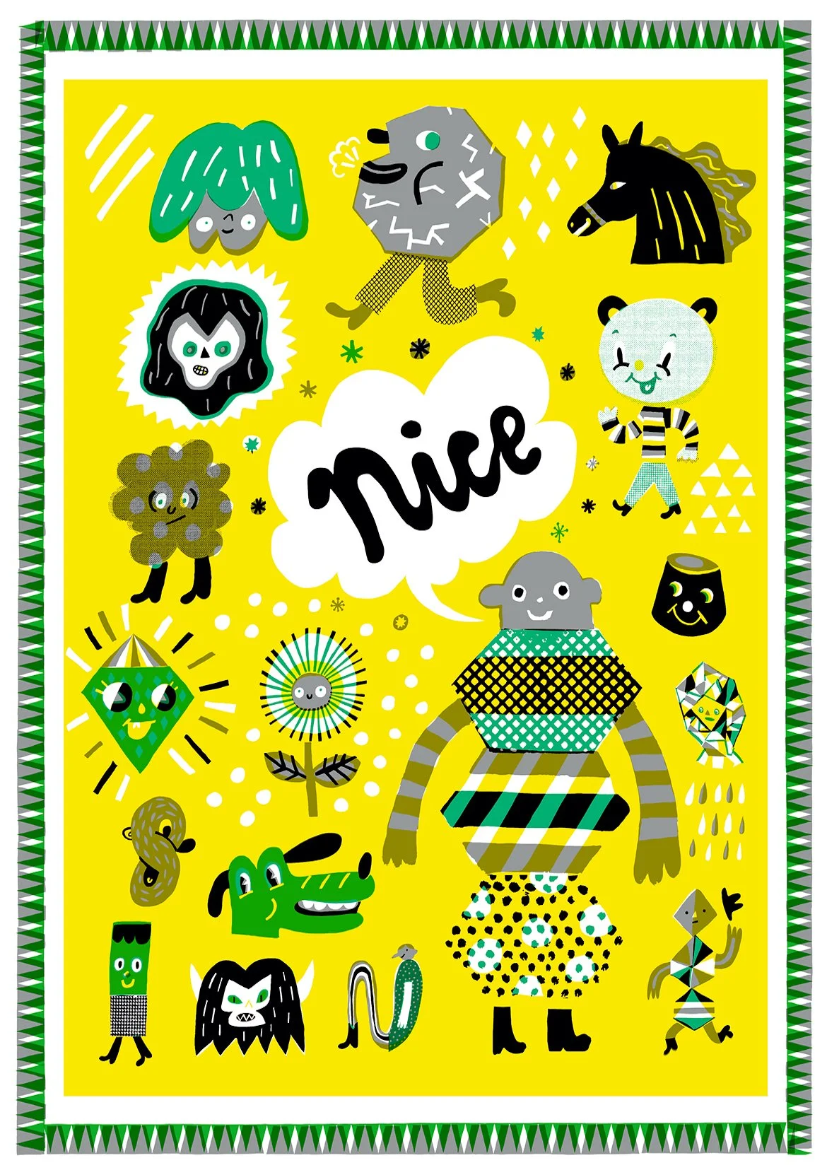 Born in Yorkshire and based in London, Paul Bower is an obsessive doodler. Originally working in linocut, he now combines this stripped down, back-to-basics aesthetic with his love of comics, fanzines, pattern design and hand-drawn typography, resulting in a rich world of playful characters and bright bold colours, often with a cheeky edge.