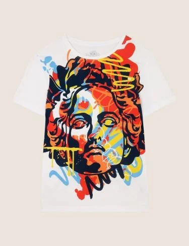The aesthetic of the ST ART brand is heavily influenced by street art and graffiti, a world away from the usual Armani style.